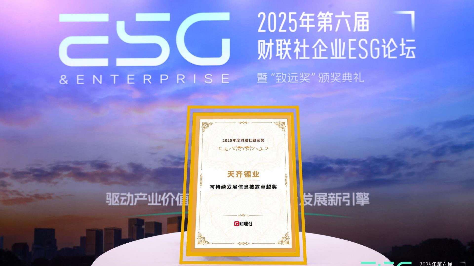 Tianqi Lithium fue galardonada con el "Premio a la Excelencia en la Divulgación sobre el Desarrollo Sostenible" 2025 otorgado por Cailian Press