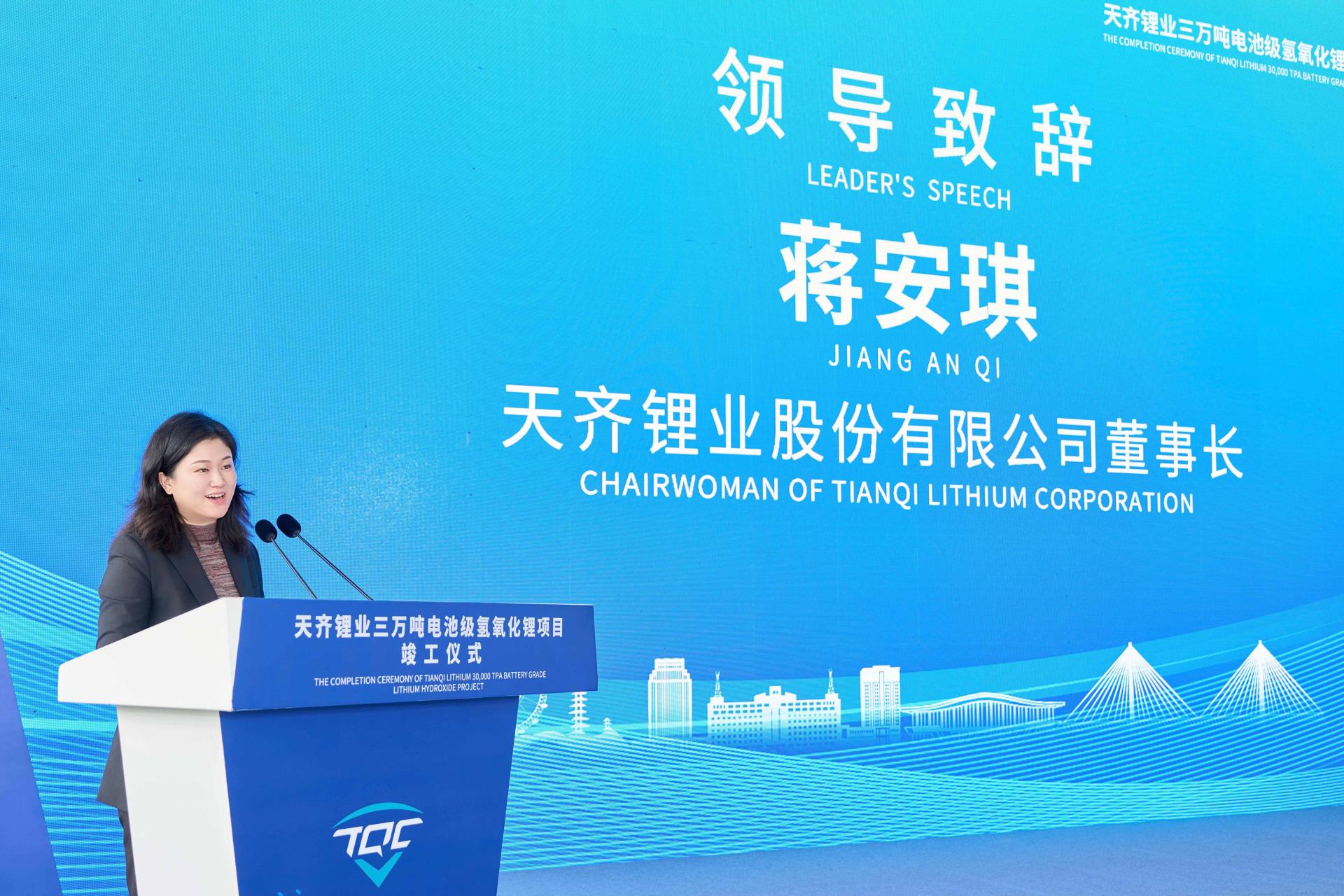 ▲Jiang Anqi, Presidenta de Tianqi Lithium, pronuncia un discurso