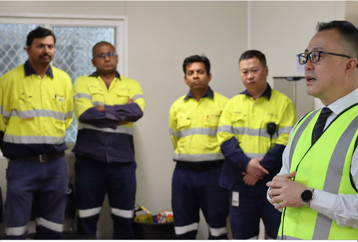 ▲Frank Ha, Director y Gerente General de Tianqi Lithium, dando importantes directrices y nuevos requisitos al personal de primera línea