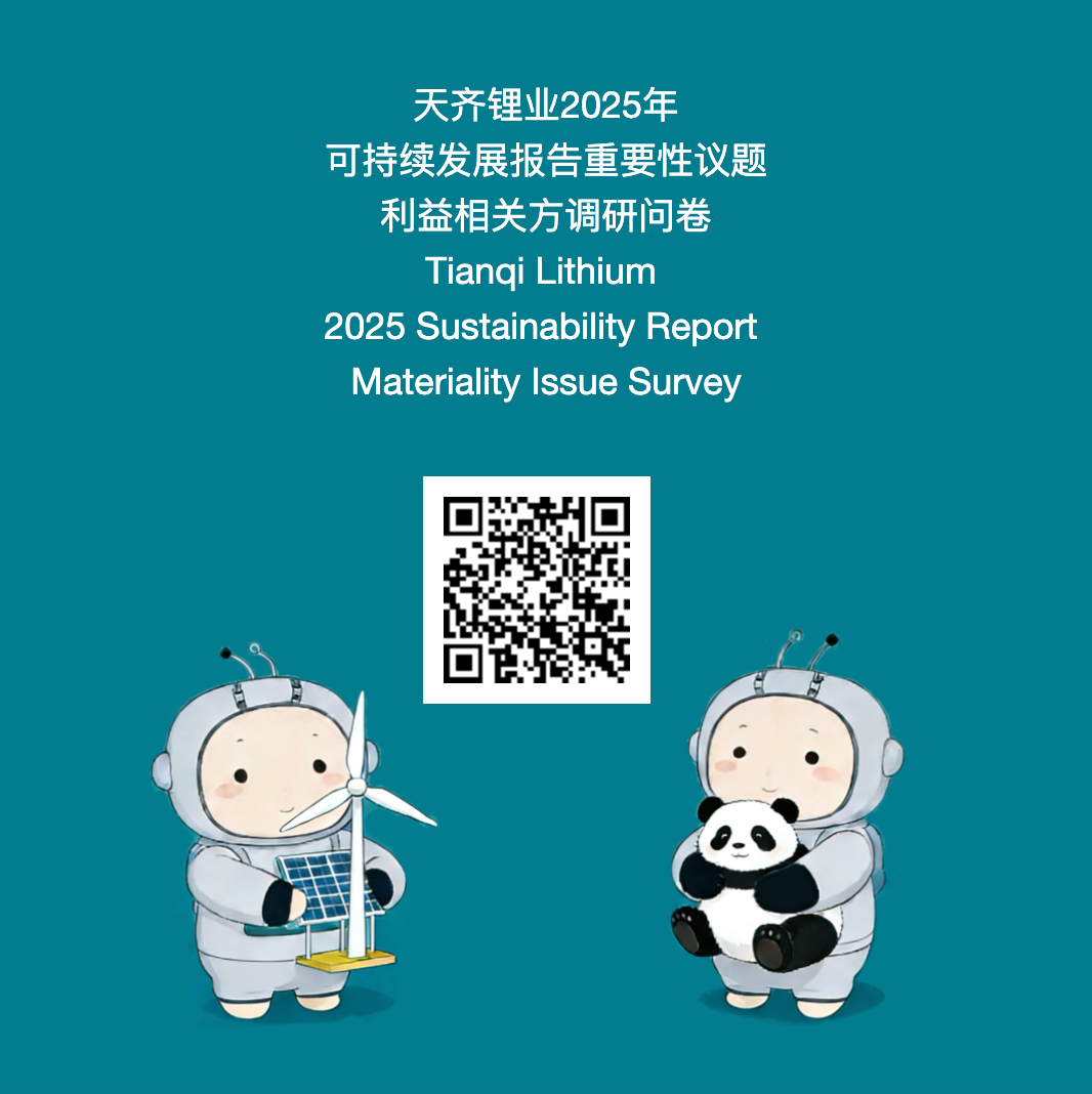 Con el fin de mejorar continuamente nuestra capacidad de creación del valor y seguir avanzando en el camino hacia el desarrollo sostenible de la empresa, Tianqi Lithium le invita cordialmente a participar en nuestra encuesta a las partes interesadas sobre temas materiales para el Informe del Desarrollo Sostenible 2025. Este cuestionario es anónimo. Nos comprometemos a mantener la más estricta confidencialidad con respecto a su información. Envíe el cuestionario cumplimentado antes del 21 de enero de 2026.