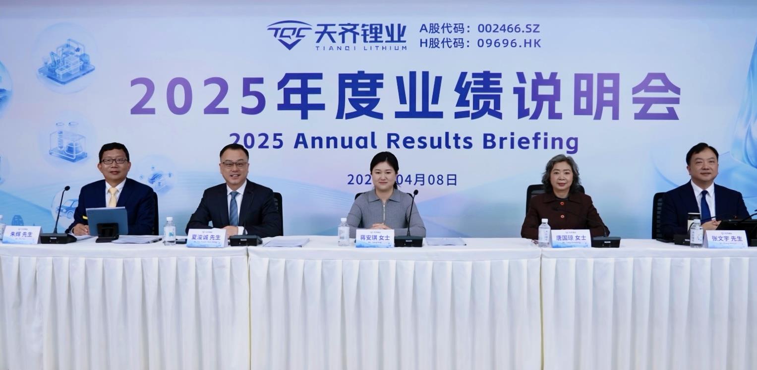 En la tarde del 8 de abril se celebró con éxito en la sede central de Tianqi Lithium en Chengdu la presentación de los resultados anuales de 2025. El acto se llevó a cabo en formato presencial y con transmisión en directo. Asistieron a la conferencia la Sra. Jiang Anqi, Presidenta del Consejo de Administración; el Sr. Frank Ha, Director y Gerente General; el Sr. Zhang Wenyu, Secretario del Consejo de Administración, Vice Gerente General y Secretario de la empresa conjunta en Hong Kong; y el Sr. Zhu Hui, Director Financiero y Vice Gerente General, quienes mantuvieron un intercambio interactivo, eficaz y en tiempo real con los inversionistas.