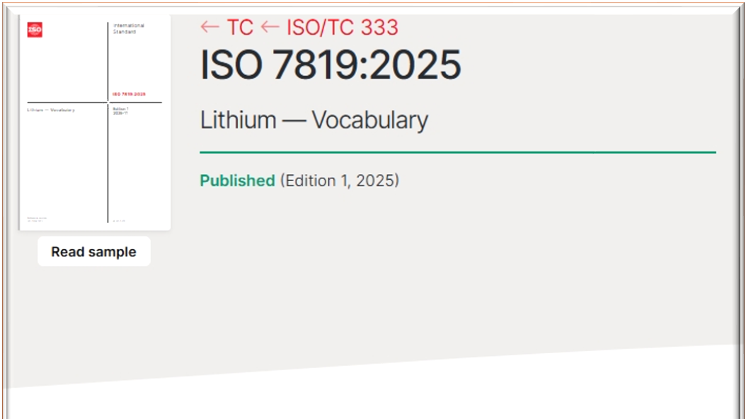 Aporte a la interconectividad de la industria del litio global: Publicación oficial de la "Terminología del litio", norma internacional ISO 7819:2025 cuya redacción fue encabezada por Tianqi Lithium